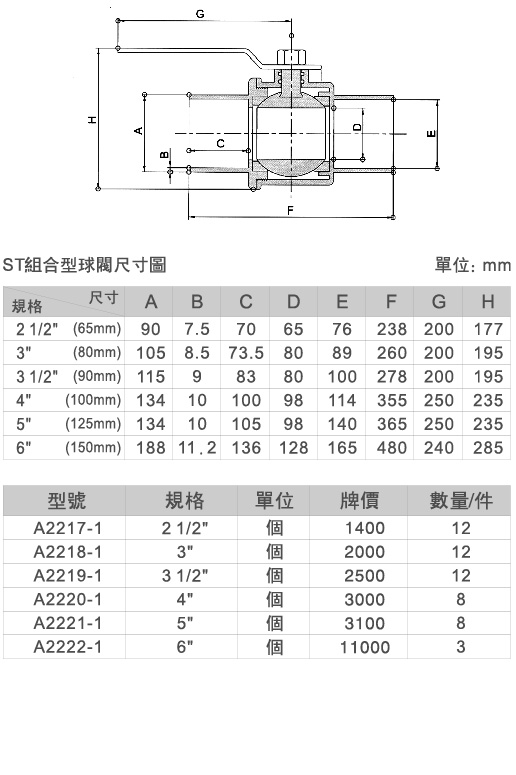 ST把手白鐵球大凡而 球閥
