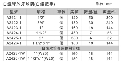ST把手外牙白鐵球凡而 球閥