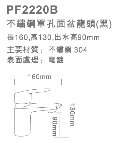 不鏽鋼單孔面盆龍頭(黑)-PF2220B