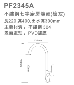 不鏽鋼七字廚房龍頭(槍灰)-PF2345A