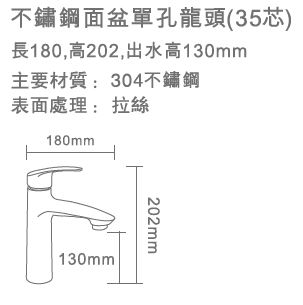 PF2225 不鏽鋼面盆單孔龍頭35芯