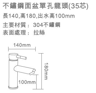 PT2012 不鏽鋼面盆單孔龍頭35芯