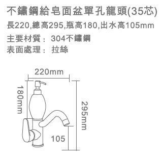 PF2254 不鏽鋼給皂面盆單孔龍頭35芯