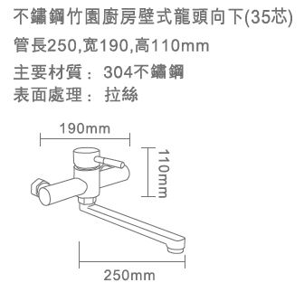 PT2002 不鏽鋼竹園廚房壁式龍頭向下35芯