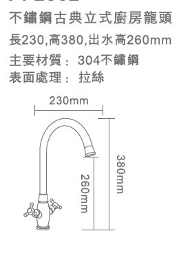 PF2302 不鏽鋼古典立式龍頭