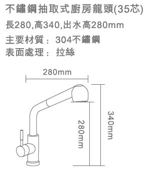 PT2014 不鏽鋼抽取式廚房龍頭35芯
