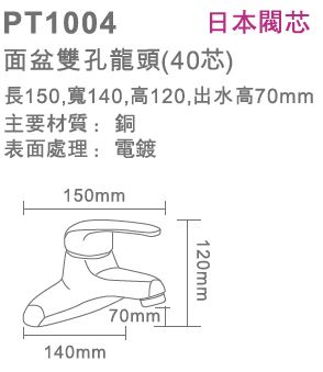PT1004 面盆雙孔龍頭40芯