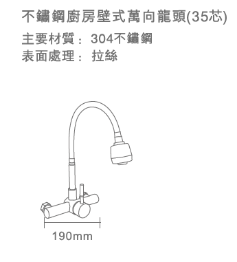 不鏽鋼廚房壁式萬象龍頭(35芯)-PT2017